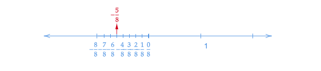 讓我們畫一條數軸。我們知道$-\frac{5}{8}$大於$-1$。所以,它位於$0$和$-1$之間。