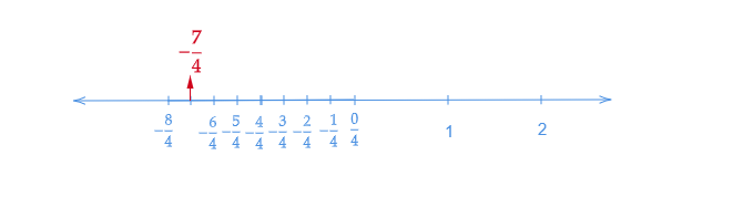 讓我們畫一條數軸。我們知道$-\frac{7}{4}$小於$-1$且大於$-2$。所以,它位於$-1$和$-2$之間。