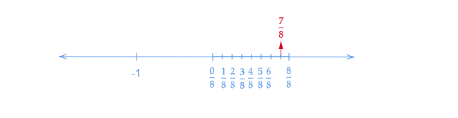 讓我們畫一條數軸。我們知道$\frac{7}{8}$小於$1$。所以,它位於$0$和$1$之間。