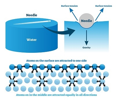 針或回形針的密度大於水。儘管如此,由於表面張力的作用,它們仍然漂浮在液麵上。