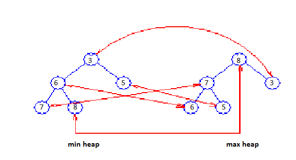 儘管圖中顯示每個元素都儲存在最小堆和最大堆中,但實際上只需要將每個元素儲存在兩個堆中的一個即可。