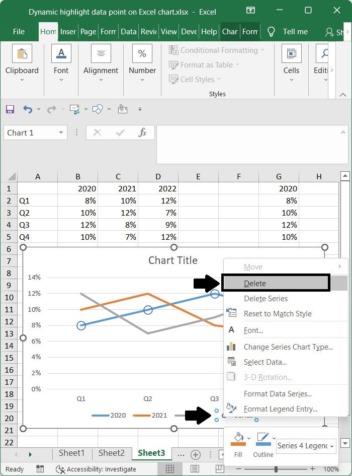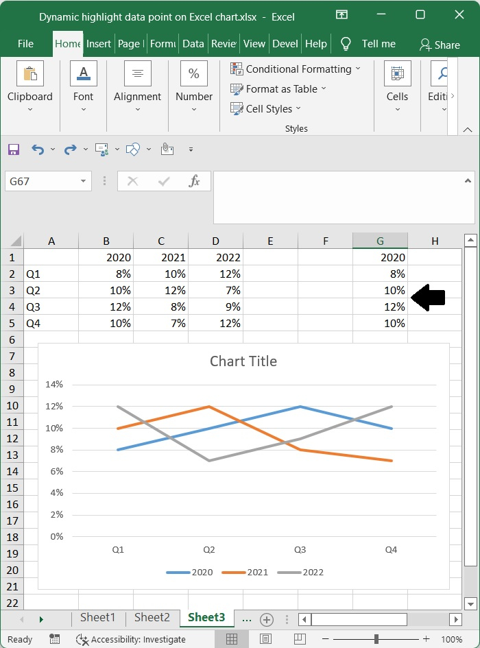 在本教程中,我們詳細解釋瞭如何動態突出顯示 Excel 圖表上的資料點。