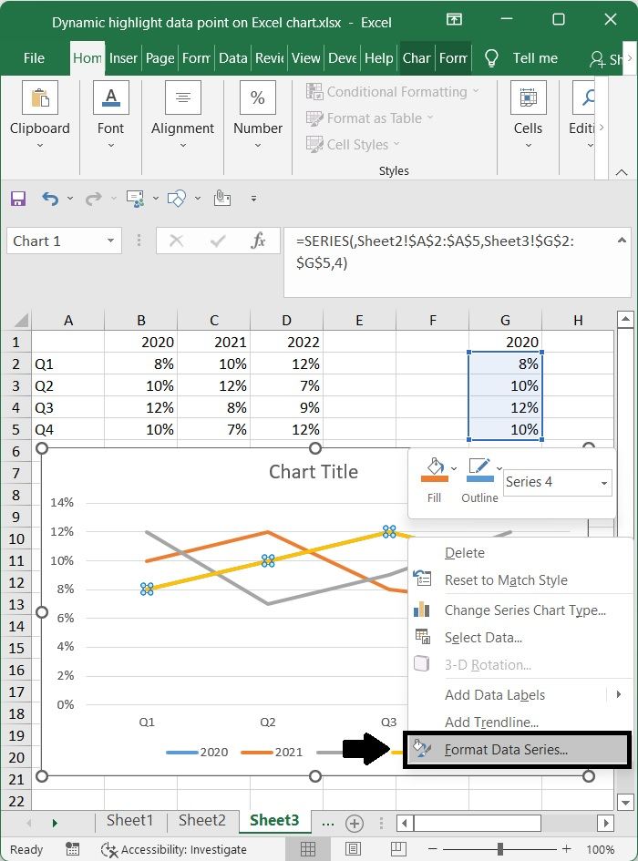 之後,右鍵單擊新序列,然後從出現的上下文選單中選擇設定資料系列格式。