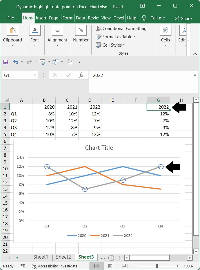 Excel 圖表中動態突出顯示資料點