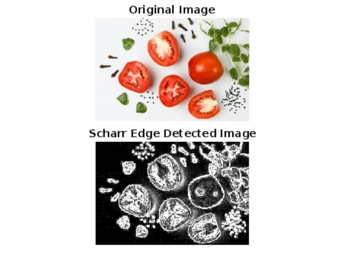 此程式碼的實現類似於 Prewitt 運算元的程式碼。唯一的區別在於,在此示例中,用於邊緣檢測的核是 Scharr 運算元核。從輸出影像可以清楚地看出,Scharr 運算元提供了更好的結果。