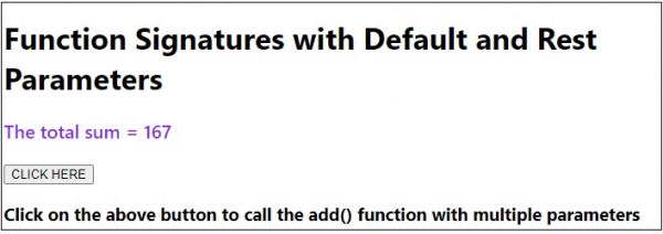 <h3>Click on the above button to call the add() function with multiple parameters</h3>