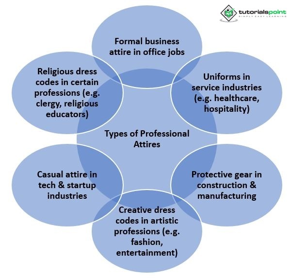 同樣,科技和初創企業行業的著裝規範較為隨意,允許員工穿著牛仔褲、T恤衫和運動鞋。某些職業有特定的宗教著裝規範,會影響員工的穿著,例如宗教教育工作者和神職人員。不同的職業對人們的工作著裝有重大影響,並制定了著裝規範以在工作場所推廣特定的形象或文化。