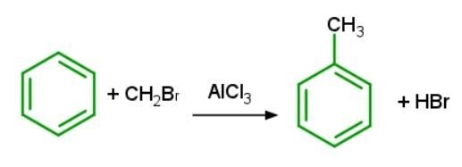 烷基鹵化物必須在路易斯酸等催化劑存在下與苯反應。當氯甲烷在氯化鋁或氯化鐵存在下與苯反應時,會發生親電取代反應 (ESR)。