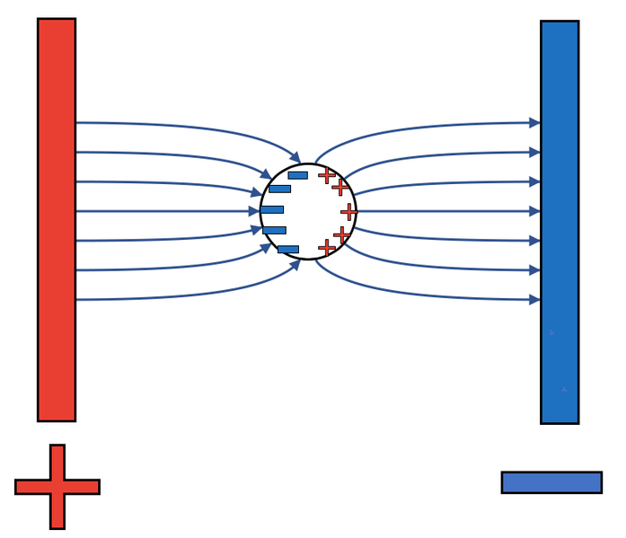 放置在靜電場中的導體將傾向於抵消材料主體內部的電場。這是因為導體中的電子完全不受約束,可以自由移動,從而抵消任何外部電場。如果有一些殘餘電場沒有被抵消,則電子將四處移動,這意味著我們不再處理靜電學。我們必須等到移動的電子透過完全抵消電場而穩定下來。因此,在靜電學中,導體內部的電場為零。