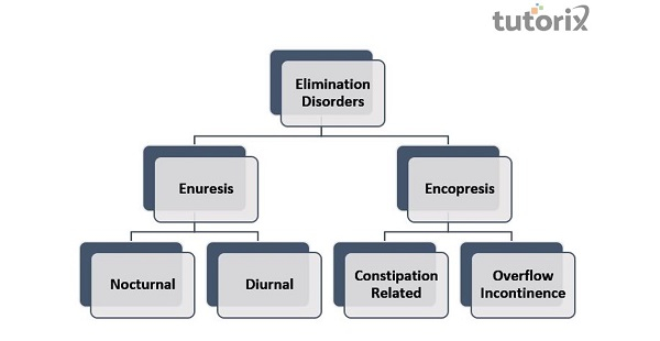 **遺尿症:**大多數消除障礙發生在兒童身上。在遺尿症中,兒童無法控制排尿。這會導致尿床。由於無法控制尿液,孩子們會在不恰當的地方排尿。這種情況可能有兩種形式