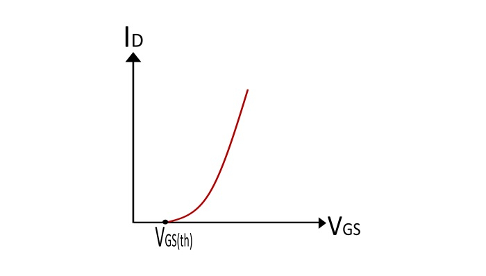 從該曲線可以看出,當 VGS 小於 VGS(th) 時,沒有感應溝道,漏極電流 (ID) 為零。當 VGS 等於 VGS(th) 時,EMOSFET 導通,感應溝道從源極導通到漏極。VGS 超過 VGSth 的進一步增加會增加感應溝道的寬度,因此會增加漏極電流。