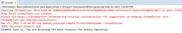 System.out.println("Element text is: " + m.getText());