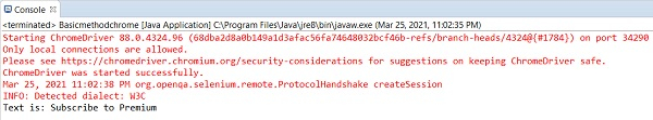 waitForVisible 方法的等效方法可以在顯式等待中使用 visibilityOfElementLocated 預期條件。同樣,waitForElementPresent 方法的等效方法可以使用 presenceOfElementLocated 預期條件。