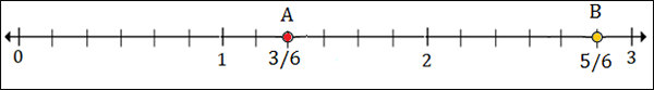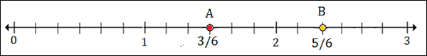 要繪製 2$\frac{5}{6}$,我們在 2 和 3 之間放置一個點,位於 2 右側 5 個刻度。
