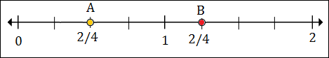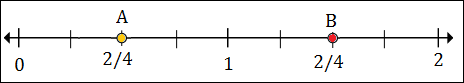 要繪製 1/2 或 2/4,我們在 0 和 1 之間放置一個點,位於 0 右側 2 個刻度。