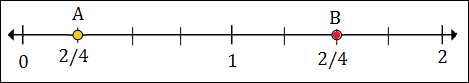要繪製 $\frac{1}{2}$ 或 $\frac{2}{4}$,我們在 0 和 1 之間放置一個點,位於 0 右側 2 個刻度。步驟3