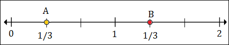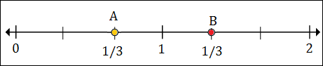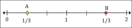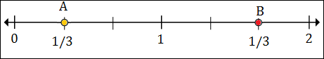 要繪製 $\frac{1}{3}$,我們在 0 和 1 之間放置一個點,位於 0 右側 1 個刻度。