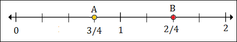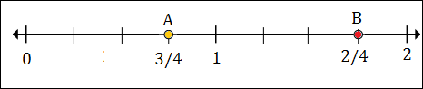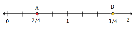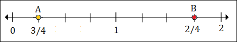 要繪製 $\frac{3}{4}$,我們在 0 和 1 之間放置一個點,位於 0 右側 3 個刻度。