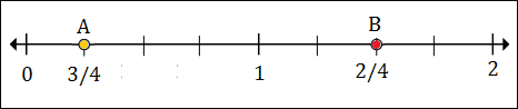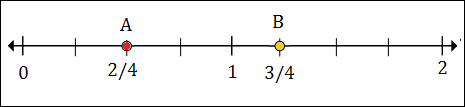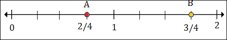 要繪製 1$\frac{1}{2}$ 或 1$\frac{2}{4}$,我們在 1 和 2 之間放置一個點,位於 1 右側 2 個刻度。