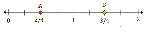 要繪製 1$\frac{1}{4}$ 或 1$\frac{2}{8}$,我們在 1 和 2 之間放置一個點,位於 1 右側 2 個刻度。