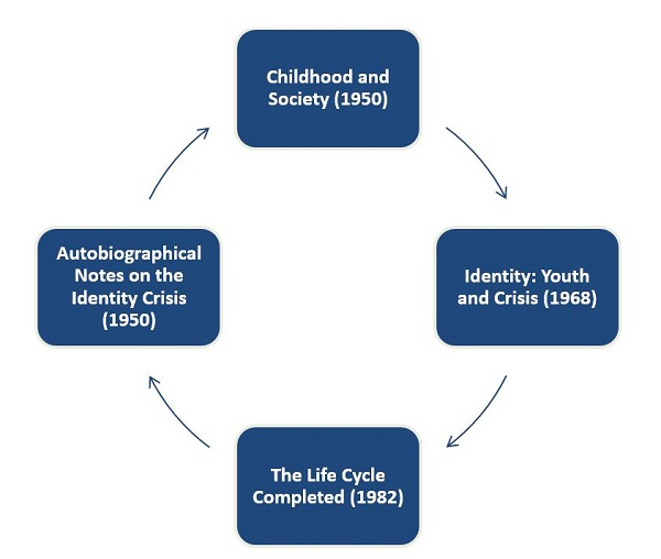 此外,埃裡克森詳細闡述了青春期和中年時期面臨的危機。他認為人生的每個階段都以危機或衝突為特徵,需要解決這些危機或衝突才能更好地適應下一階段。他還提出了自我同一性的概念,他認為自我同一性在適應每個階段的危機中至關重要。與他同時代的許多人不同,他相信社會在發展中的作用,因此將他的理論命名為“心理社會發展理論”。他的主要著作有: