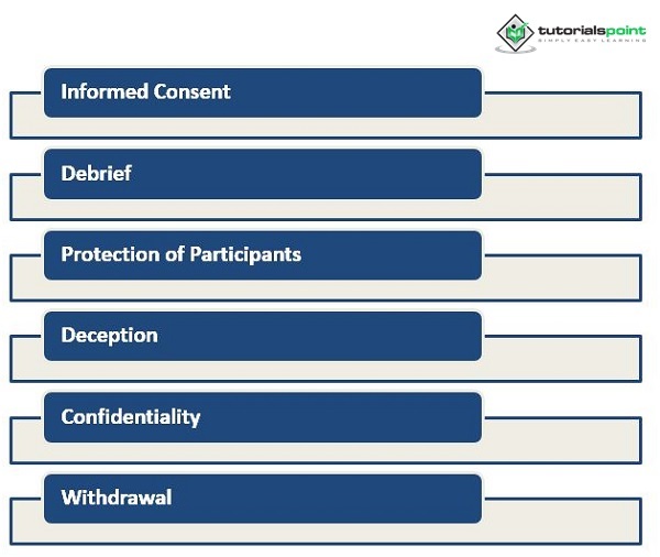 遵循倫理原則,例如獲得參與者的同意、說明欺騙的原因、維護參與者的隱私和保密性以及允許他們撤回研究,可以確保進行符合倫理的研究。心理學領域進行的有爭議的實驗為制定倫理原則奠定了基礎。儘管倫理原則僅適用於與人類參與者合作的研究人員,但現在越來越重視在與動物受試者合作時突出倫理行為,並確保不會對它們造成傷害。