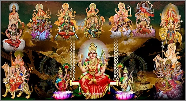根據印度教傳統,溼婆神(Maa Shakti)化身為摩訶薩拉斯瓦蒂(Mahasaraswati)、摩訶拉克希米(Mahalakshmi)和摩訶卡利(Mahakali),她們分別是梵天(Brahma)、毗溼奴(Vishnu)和溼婆(Mahadev)的活躍能量。此外,這三種溼婆神形態又各自化身為三種形態,因此在九夜節期間總共崇拜九種杜爾迦女神的形態,稱為 **九杜爾迦(Navadurgas)**。Nav 在梵文中表示數字九。