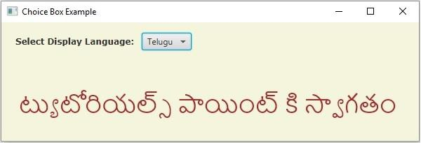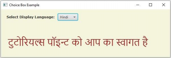 在 JavaFX 中,選擇框由類 javafx.scene.control.ChoiceBox<T> 表示。您可以透過例項化此類來建立選擇框。