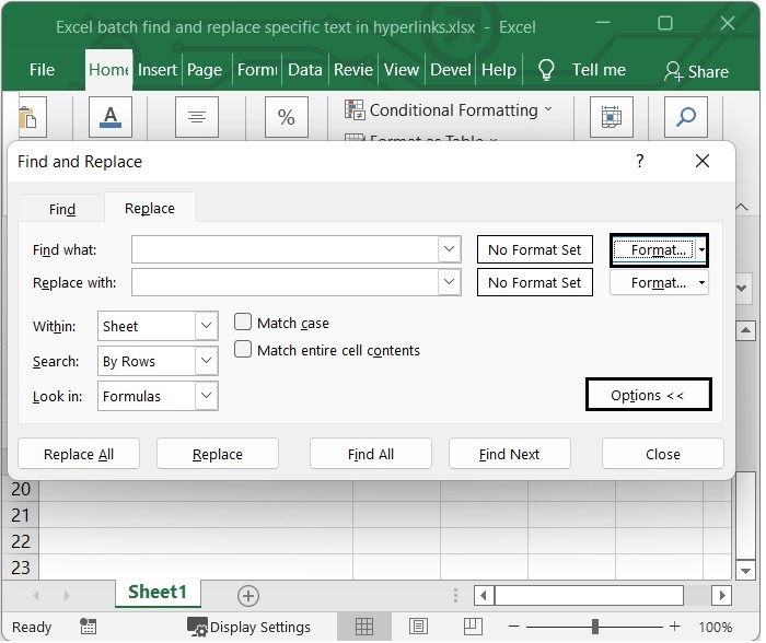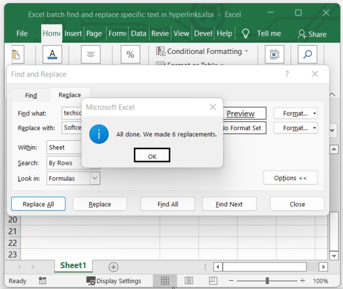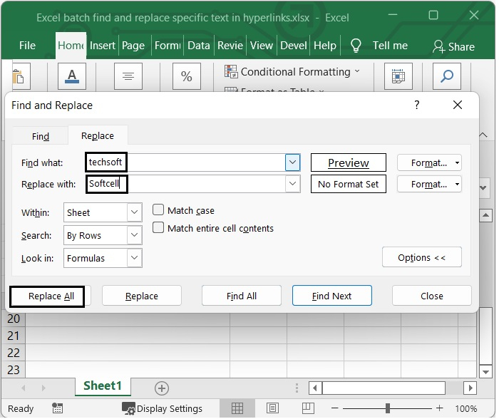 在某些情況下,您可能需要查詢和替換超連結中的特定文字,同時排除所有其他內容形式。在這種情況下,您幾乎只使用查詢和替換功能,該功能在應用於單個值時完全有效。