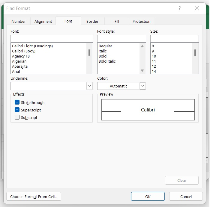 然後,在彈出視窗中,單擊選項。接下來,轉到“查詢內容”行上的格式選項,將開啟另一個彈出視窗查詢格式。