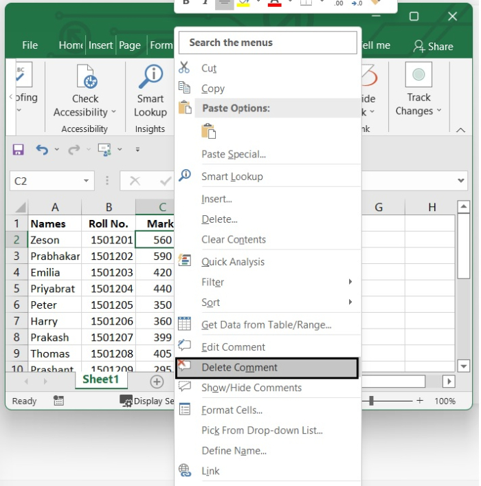 透過右鍵單擊單元格刪除註釋 - 選擇要編輯其註釋的單元格。右鍵單擊該單元格,然後從選項中選擇刪除註釋。
