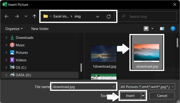 之後,單擊插入選項,您選擇的所有照片都將新增到工作表中。