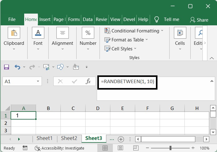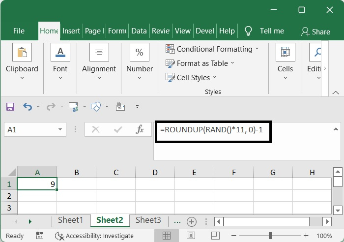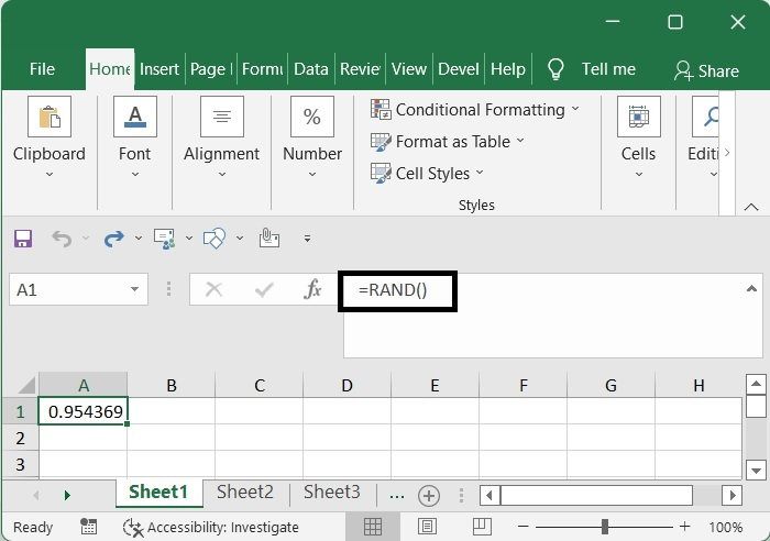如果您按下 F9 鍵,所有活動工作簿中的所有工作表都將重新計算,並且單元格 A1 將因此獲得一個新的隨機數。