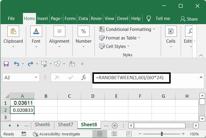 如果您希望這樣做,您可以使用以下公式在兩個特定時間之間生成隨機時間,例如在 10 點和 20 點之間生成時間。