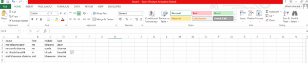 與其手動在相應的列中輸入名字、中間名或姓氏(或嘗試從 A 列複製整個客戶姓名,然後編輯掉“名字”、“中間名”和“姓氏”列中不需要的部分),您可以使用快速填充快速有效地完成此工作。