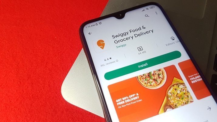 圖片 - Swiggy 食品和雜貨配送應用程式或應用在智慧手機或手機裝置的 Google Play 商店中開啟。