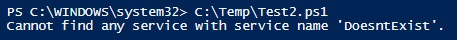 正如您所看到的,即使找不到服務名稱,Write-Output 也會被列印。因此,指令碼執行繼續。