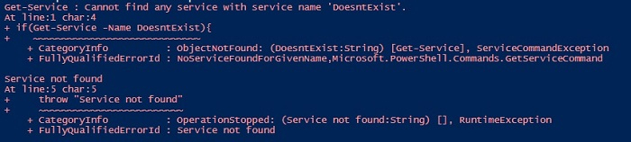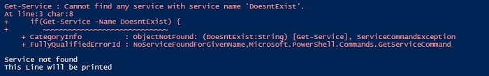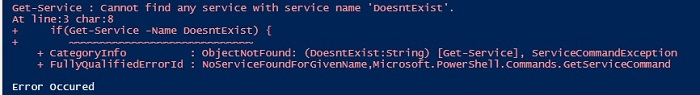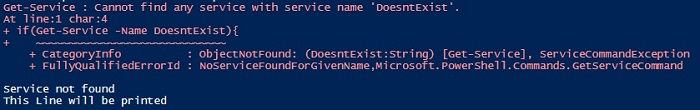if(Get-Service -Name DoesntExist -ErrorAction Stop) {