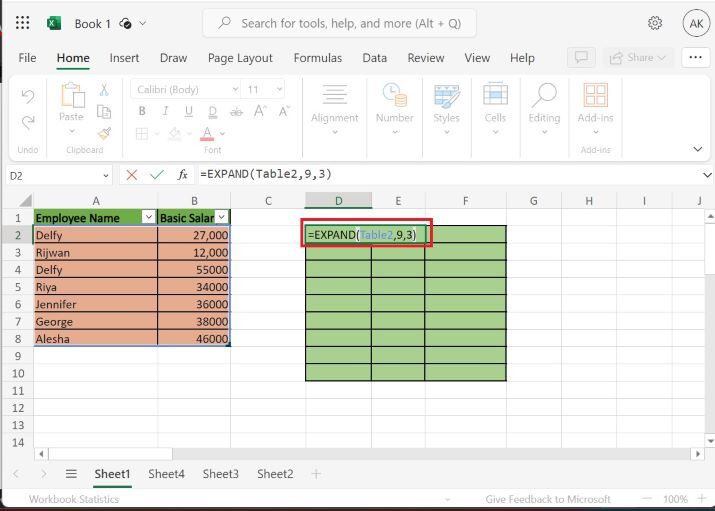 使用者可以使用簡單的示例來演示如何使用EXPAND函式在Excel 365版本中擴充套件選定的陣列。使用者可以使用語法或函式來擴充套件預定義的陣列,這將顯示結果。