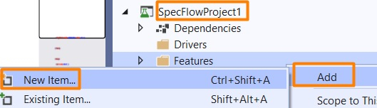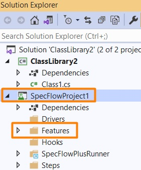 建立SpecFlow專案後,轉到解決方案資源管理器並展開它。