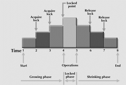 每個事務將以兩個不同的階段鎖定和解鎖資料項。