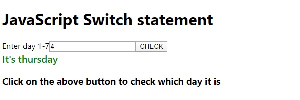 <h1>JavaScript Switch statement</h1>