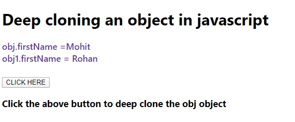 以下是 JavaScript 中的物件深克隆程式碼 −