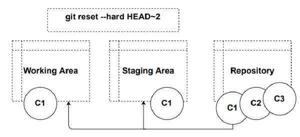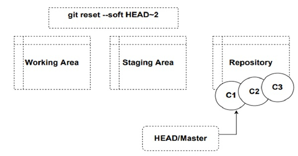 例如,以下命令將 HEAD 指標向後移動 2 次提交: