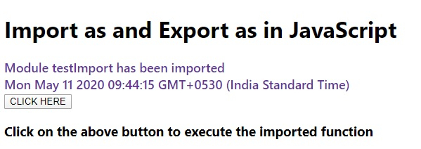 以下是 Javascript import as 和 export as 構造的程式碼 −