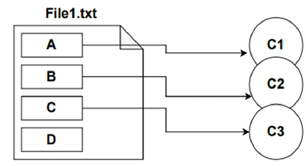 該圖顯示了 Git 儲存庫中名為 File1.txt 的檔案。A、B、C 和 D 表示新增到檔案中的行。該圖表明在新增每行 A、B 和 C 後都會執行提交。c1 是新增行 A 後執行的提交,c2 是新增行 B 後執行的提交,而 C3 表示新增行 C 後執行的提交。現在新增行 D。此更改在工作目錄中可用,並且此更改已暫存但尚未提交。