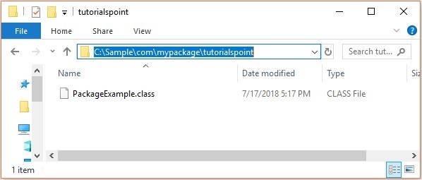 編譯後,你可以在位置 com/mypackage/tutorialspoint 檢視建立的類的類檔案。