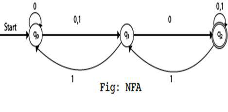 非確定性有限自動機也具有與 DFA 相同的五個狀態,但具有不同的轉換函式,如下所示: