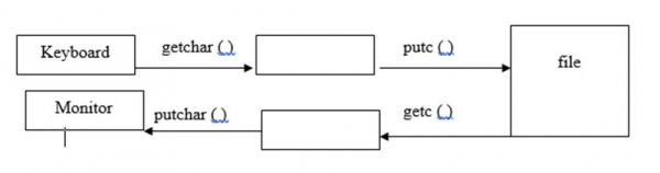 #include<stdio.h> int main(){ char ch; FILE *fp; fp=fopen("std1.txt","w"); //opening file in write mode printf("enter the text.press cntrl Z:"); while((ch = getchar())!=EOF){ putc(ch,fp); // writing each character into the file } fclose(fp); fp=fopen("std1.txt","r"); printf("text on the file:"); while ((ch=getc(fp))!=EOF){ // reading each character from file putchar(ch); // displaying each character on to the screen } fclose(fp); return 0; }