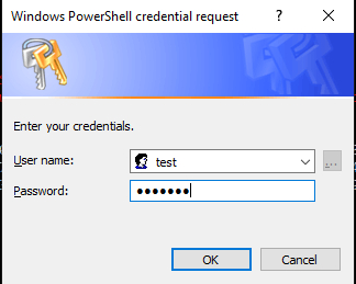PS C:\WINDOWS\system32> $cred UserName Password -------- -------- test System.Security.SecureString